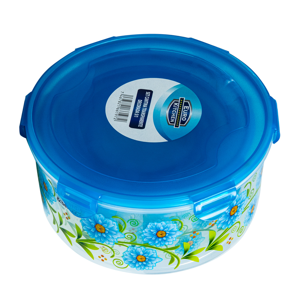 Set de Cantinas Redondas Azul Estampadas 5 en 1